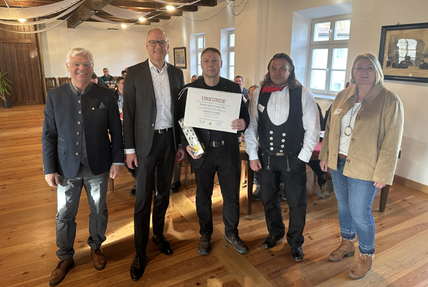 Im Anschluss wurde Zimmermeister Friedrich Übel aus Erlau für seine besonderen Verdienste für das Bayerische Zimmererhandwerk mit der Silbernen Ehrennadel des Landesinnungsverbandes des Bayerischen Zimmererhandwerks geehrt.
