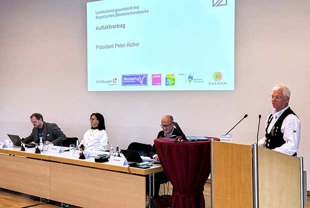 Die Zimmerer Oberfrankens trafen sich am 4. Februar 2026 in Marktheidenfeld zur jährlichen Bezirksversammlung. Dazu begrüßten der Präsident des Landesinnungsverbandes des Bayerischen Zimmererhandwerks (LIV) Peter Aicher, Hauptgeschäftsführer Kai Gajewski sowie Bezirksvorsitzender Matthias Amon neben 50 Teilnehmenden aus der Branche auch den stellvertretenden Landrat des Landkreises Lichtenfels Helmut Fischer und den Ersten Bürgermeister der Stadt Bad Staffelstein Mario Schönwald.