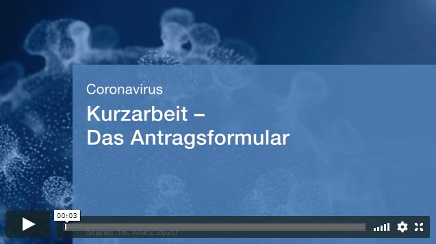 Wie können Arbeitgeber in Zeiten der Corona-Krise Kurzarbeitergeld beantragen? Dafür haben die Bundesagentur für Arbeit und die Vereinigung der Bayerischen Wirtschaft (vbw) ein Erklärvideo erstellt. Innungsmitglieder finden es im internen Bereich unter Corona-Informationsdienst. Denn auch der Landesinnungsverband ist Mitglied der vbw.