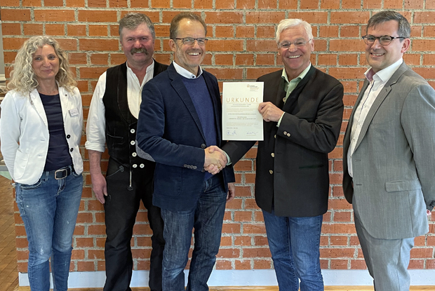 Die Fortbildung „Vorarbeiter Holzbau und Bauen im Bestand – anerkannt von Holzbau Deutschland“ wurde erfolgreich im Ausbildungszentrum der Bauinnung Augsburg (ABZ) durchgeführt. Präsident Peter Aicher ließ es sich nicht nehmen, die Urkunde über die erfolgreiche Zertifizierung persönlich der Leitung des Bildungszentrums zu überreichen.