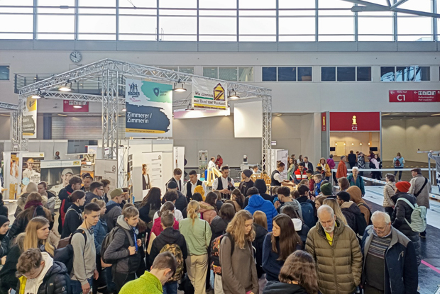 Von 8. bis 12. März fand in München die Internationale Handwerksmesse (IHM) statt – auf der Sonder- und Aktionsschau „YoungGeneration“ wurden Schüler über den vielseitigen Ausbildungsberuf Zimmerer informiert.